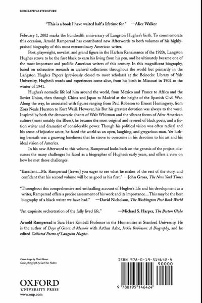 February 1, 2002 marks the 100th birthday of Langston Hughes. To commemorate the centennial of his birth, Arnold Rampersad has contributed new Afterwords to both volumes of his highly-praised biography of this most extraordinary and prolific American writer. In young adulthood Hughes possessed a nomadic but dedicated spirit that led him from Mexico to Africa and the Soviet Union to Japan, and countless other stops around the globe. Associating with political activists, patrons, and fellow artists, and drawing inspiration from both Walt Whitman and the vibrant Afro-American culture, Hughes soon became the most original and revered of black poets. In the first volume's Afterword, Rampersad looks back at the significant early works Hughes produced, the genres he explored, and offers a new perspective on Hughes's lasting literary influence. Exhaustively researched in archival collections throughout the country, especially in the Langston Hughes papers at Yale University's Beinecke Library, and featuring fifty illustrations per volume, this anniversary edition will offer a new generation of readers entrance to the life and mind of one of the twentieth century's greatest artists.