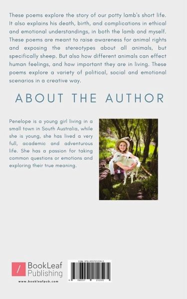 These poems explore the story of our potty lamb's short life. It also explains his death, birth, and complications in ethical and emotional understandings, in both the lamb and myself. These poems are meant to raise awareness for animal rights and exposing the stereotypes about all animals, but specifically sheep. But also how different animals can effect human feelings, and how important they are in living. These poems explore a variety of political, social and emotional scenarios in a creative way.