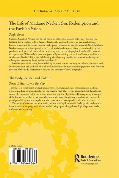 Madame Necker occupies a unique position in French social and cultural history. This study breaks new ground by examining the profoundly corporeal nature of Madame Necker's life - her debilitating, decades-long psychic and somatic suffering and subsequent curious death.