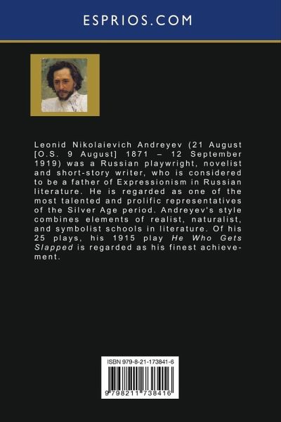 Leonid Nikolaievich Andreyev (21 August [O. S. 9 August] 1871 - 12 September 1919) was a Russian playwright, novelist and short-story writer, who is considered to be a father of Expressionism in Russian literature. He is regarded as one of the most talented and prolific representatives of the Silver Age period. Andreyev's style combines elements of realist, naturalist, and symbolist schools in literature. Of his 25 plays, his 1915 play He Who Gets Slapped is regarded as his finest achievement.