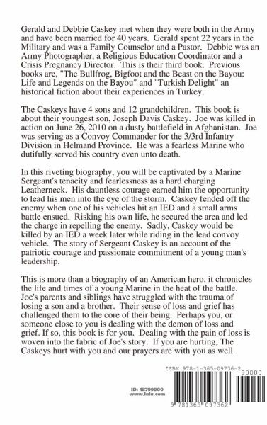 This is a memoir of a young Marine Sergeant who was Killed in Action in Operation Enduring Freedom in Helmand Province, Afghanistan. Sergeant Joseph Davis Caskey was twenty-four years old on June 26, 2010 when the vehicle he was riding in hit an IED. The story of Sergeant Caskey is an account of the patriotic courage and passionate commitment of a faithful and fearless young man. He was a man of strong Christian principle and sterling character. This is a story of grief and loss and provides a powerful message to those who are dealing with their own pain and hurt.