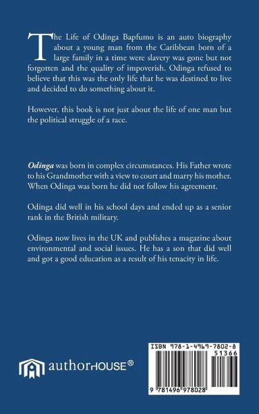 The Life of Odinga Bapfumo is an auto biography about a young man from the Caribbean born of a large family in a time were slavery was gone but not forgotten and the quality of impoverish. Odinga refused to believe that this was the only life that he was destined to live and decided to do something about it. However, this book is not just about the life of one man but the political struggle of a race.
