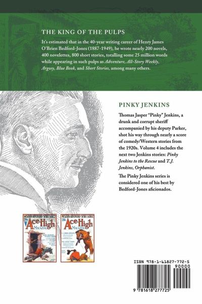 One of the best series ever published in the pulps was written by the prolific H. Bedford-Jones, author of hundreds of stories totaling an estimated 25 millions words. Thomas Jasper Pinky Jenkins, a drunk and corrupt sheriff accompanied by his deputy Parker, shot his way through nearly a score of comedy/Western stories from the 1920s. Volume 4 includes the next two Jenkins stories: "Pinky Jenkins to the Rescue" and "T.J. Jenkins, Orphanist." The Pinky Jenkins series is considered one of his best by Bedford-Jones aficionados.