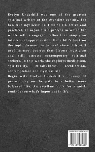 Evelyn Underhill was one of the greatest spiritual writers of the twentieth century. For her, true mysticism is, first of all, active and practical, an organic life process in which the whole self is engaged, rather than simply an intellectual apprehension. Underhill's book on the topic deserves to be read since it is still used in most courses that discuss mysticism and still attracts contemporary spiritual seekers. In this work, she explores meditation, spirituality, mindfulness, recollection, contemplation and mystical life. Begin with Evelyn Underhill a journey of peace today on the path to a better, more balanced life. An excellent book for a quick reminder on what's important in life. Excerpt: "We have already agreed that, if we wish to grasp the real character of spiritual life, we must avoid the temptation to look at it as merely a historical subject. If it is what it claims to be, it is a form of eternal life, as constant, as accessible to us here and now, as in any so-called age of faith: therefore of actual and present importance, or else nothing at all. This is why I think that the approach to it through philosophy and psychology is so much to be preferred to the approach through pure history. Yet there is a sense in which we must not neglect such history; for here, if we try to enter by sympathy into the past, we can see the life of the Spirit emerging and being lived in all degrees of perfection and under many different forms. Here, through and behind the immense diversity of temperaments which it has transfigured, we can best realise its uniform and enduring character; and therefore our own possibility of attaining to it, and the way that we must tread so to do. History does not exhort us or explain to us, but exhibits living specimens to us; and these specimens witness again and again to the fact that a compelling power does exist in the world-little understood, even by those who are inspired by it-which presses men to transcend their material limitations and mental conflicts, and live a new creative life of harmony, freedom and joy. Directly human character emerges as one of man's prime interests, this possibility emerges too, and is never lost sight of again. Hindu, Buddhist, Egyptian, Greek, Alexandrian, Moslem and Christian all declare with more or less completeness a way of life, a path, a curve of development which shall end in its attainment; and history brings us face to face with the real and human men and women who have followed this way, and found its promise to be true." Contents: PREFACE CHAPTER I. THE CHARACTERS OF SPIRITUAL LIFE CHAPTER II. HISTORY AND THE LIFE OF THE SPIRIT CHAPTER III. PSYCHOLOGY AND THE LIFE OF THE SPIRIT (I) THE ANALYSIS OF MIND CHAPTER IV. PSYCHOLOGY AND THE LIFE OF THE SPIRIT (II) CONTEMPLATION AND SUGGESTION CHAPTER V. INSTITUTIONAL RELIGION AND THE LIFE OF THE SPIRIT CHAPTER VI. THE LIFE OF THE SPIRIT IN THE INDIVIDUAL CHAPTER VII. THE LIFE OF THE SPIRIT AND EDUCATION CHAPTER VIII. THE LIFE OF THE SPIRIT AND THE SOCIAL ORDER PRINCIPAL WORKS USED OR CITED