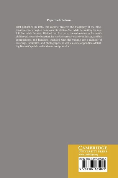 First published in 1907, this volume presents the biography of the nineteenth-century English composer Sir William Sterndale Bennett by his son, J. R. Sterndale Bennett. Divided into five parts, the volume traces Bennett's childhood, musical education, his work as a teacher and conductor, and his compositions and honours. Included with the volume are a number of drawings, facsimiles, and photographs, as well as some appendices detailing Bennett's published and manuscript works.
