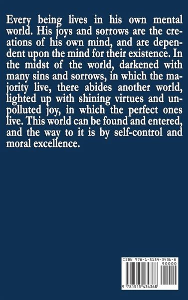 From the author of As a Man Thinketh. Every being lives in his own mental world. His joys and sorrows are the creations of his own mind, and are dependent upon the mind for their existence. In the midst of the world, darkened with many sins and sorrows, in which the majority live, there abides another world, lighted up with shining virtues and unpolluted joy, in which the perfect ones live. This world can be found and entered, and the way to it is by self-control and moral excellence. --James Allen