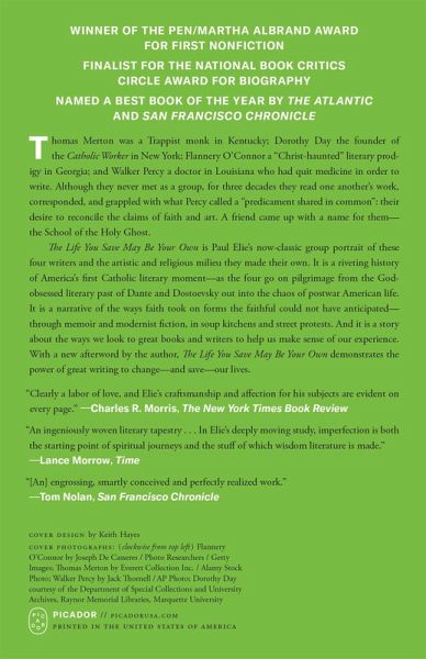 WINNER OF THE PEN/MARTHA ALBRAND AWARD FOR FIRST NONFICTION FINALIST FOR THE NATIONAL BOOK CRITICS CIRCLE AWARD FOR BIOGRAPHY NAMED A BEST BOOK OF THE YEAR BY THE ATLANTIC AND SAN FRANCISCO CHRONICLE Thomas Merton was a Trappist monk in Kentucky; Dorothy Day the founder of the Catholic Worker in New York; Flannery O'Connor a "Christ-haunted" literary prodigy in Georgia; and Walker Percy a doctor in Louisiana who had quit medicine in order to write. Although they never met as a group, for three decades they read one another's work, corresponded, and grappled with what Percy called a "predicament shared in common": their desire to reconcile the claims of faith and art. A friend came up with a name for them-the School of the Holy Ghost. The Life You Save May Be Your Own is Paul Elie's now-classic group portrait of these four writers and the artistic and religious milieu they made their own. It is a riveting history of America's first Catholic literary moment-as the four go on pilgrimage from the God-obsessed literary past of Dante and Dostoevsky out into the chaos of postwar American life. It is a narrative of the ways faith took on forms the faithful could not have anticipated- through memoir and modernist fiction, in soup kitchens and street protests. And it is a story about the ways we look to great books and writers to help us make sense of our experience. With a new afterword by the author, The Life You Save May Be Your Own demonstrates the power of great writing to change-and save-our lives.