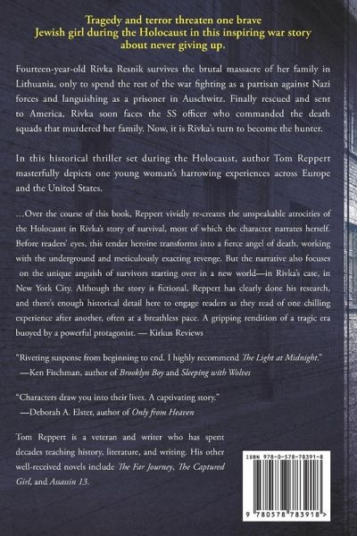 Tragedy and terror threaten one brave Jewish girl during the Holocaust in this inspiring war story about never giving up. Fourteen-year-old Rivka Resnik survives the brutal massacre of her family in Lithuania, only to spend the rest of the war fighting as a partisan against Nazi forces and languishing as a prisoner in Auschwitz. Finally rescued and sent to America, Rivka soon faces the SS officer who commanded the death squads that murdered her family. Now, it is Rivka's turn to become the hunter. In this historical thriller set during the Holocaust, author Tom Reppert masterfully depicts one young woman's harrowing experiences across Europe and the United States. ...Over the course of this book, Reppert vividly re-creates the unspeakable atrocities of the Holocaust in Rivka's story of survival, most of which the character narrates herself. Before readers' eyes, this tender heroine transforms into a fierce angel of death, working with the underground and meticulously exacting revenge. But the narrative also focuses on the unique anguish of survivors starting over in a new world--in Rivka's case, in New York City. Although the story is fictional, Reppert has clearly done his research, and there's enough historical detail here to engage readers as they read of one chilling experience after another, often at a breathless pace. A gripping rendition of a tragic era buoyed by a powerful protagonist. -- Kirkus Reviews "Riveting suspense from beginning to end. I highly recommend The Light at Midnight." --Ken Fischman, author of Brooklyn Boy and Sleeping with Wolves "Characters draw you into their lives. A captivating story." --Deborah A. Elster, author of Only from Heaven