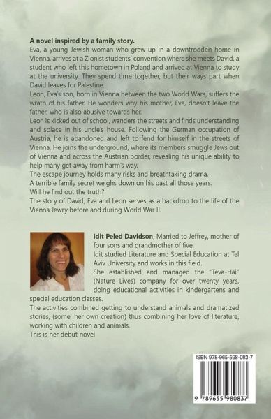 A novel inspired by a family story. Eva, a young Jewish woman who grew up in a downtrodden home in Vienna, arrives at a Zionist students' convention where she meets David, a student who left this hometown in Poland and arrived at Vienna to study at the university. They spend time together, but their ways part when David leaves for Palestine. Leon, Eva's son, born in Vienna between the two World Wars, suffers the wrath of his father. He wonders why his mother, Eva, doesn't leave the father, who is also abusive towards her. Leon is kicked out of school, wanders the streets and finds understanding and solace in his uncle's house. Following the German occupation of Austria, he is abandoned and left to fend for himself in the streets of Vienna. He joins the underground, where its members smuggle Jews out of Vienna and across the Austrian border, revealing his unique ability to help many get away from harm's way. The escape journey holds many risks and breathtaking drama. A terrible family secret weighs down on his past all those years. Will he find out the truth? The story of David, Eva and Leon serves as a backdrop to the life of the Vienna Jewry before and during World War II.