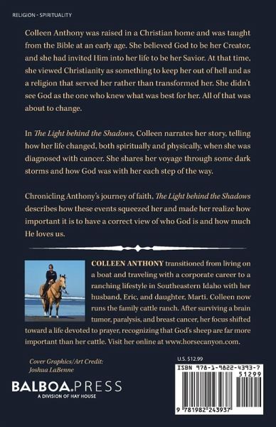 Colleen Anthony was raised in a Christian home and was taught from the Bible at an early age. She believed God to be her Creator, and she had invited Him into her life to be her Savior. At that time, she viewed Christianity as something to keep her out of hell and as a religion that served her rather than transformed her. She didn't see God as the one who knew what was best for her. All of that was about to change. In The Light behind the Shadows, Colleen narrates her story, telling how her life changed, both spiritually and physically, when she was diagnosed with cancer. She shares her voyage through some dark storms and how God was with her each step of the way. Chronicling Anthony's journey of faith, The Light behind the Shadows describes how these events squeezed her and made her realize how important it is to have a correct view of who God is and how much He loves us.