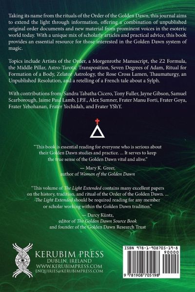 Taking its name from the rituals of the Order of the Golden Dawn, this journal aims to extend the light through information, offering a combination of unpublished original order documents and new material from prominent voices in the esoteric world today. With a unique mix of scholarly articles and practical advice, this book provides an essential resource for those interested in the Golden Dawn system of magic. Topics include Artists of the Order, a Morgenrothe Manuscript, the Z2 Formula, the Middle Pillar, Astro-Tarotic Transposition, Seven Degrees of Adam, Ritual for Formation of a Body, Zelator Astrology, the Rose Cross Lamen, Thaumaturgy, an Unpublished Resolution, and a retelling of a French tale about a Sylph. With contributions from: Sandra Tabatha Cicero, Tony Fuller, Jayne Gibson, Samuel Scarborough, Jaime Paul Lamb, J.P.F., Alex Sumner, Frater Manu Forti, Frater Goya, Frater Yehohanan, Frater Yechidah, and Frater YShY.