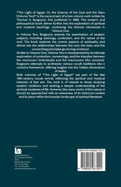 After claiming visions of advanced entities known as the Brotherhood of Light, whose purpose was to guide human destiny, Burgoyne and others established The Hermetic Brotherhood of Luxor. In 'The Light of Egypt', vol.2, Burgoyne reveals how to attain the spiritual wisdom described in vol.1., with special reference to astrology.