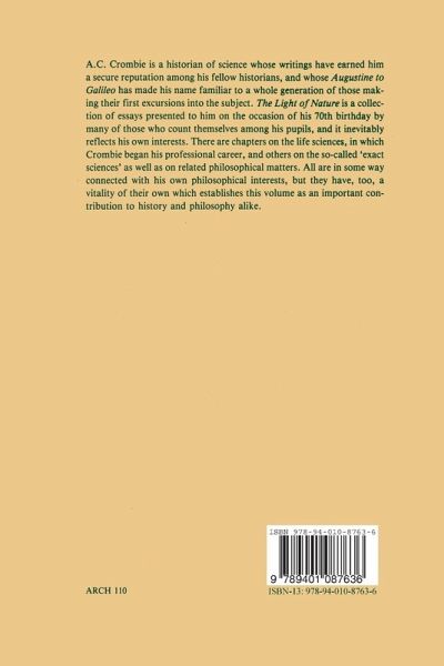 This volume of essays is meant as a tribute to Alistair Crombie by some of those who have studied with him. The occasion of its publication is his seven tieth birthday - 4 November 1985. Its contents are a reflection - or so it is hoped - of his own interests, and they indicate at the same time his influence on subjects he has pursued for some forty years. Born in Brisbane, Australia, Alistair Cameron Crombie took a first degree in zoology at the University of Melbourne in 1938, after which he moved to Je sus College, Cambridge. There he took a doctorate in the same subject (with a dissertation on population dynamics - foreshadowing a later interest in the history of Darwinism) in 1942. By this time he had taken up a research position with the Ministry of Agriculture and Fisheries in the Cambridge Zoological La boratory, a position he left in 1946, when he moved to a lectureship in the his tory and philosophy of science at University College, London. H. G. Andrewa ka and L. C. Birch, in a survey of the history of insect ecology (R. F. Smith, et al. , History of Entomology, 1973), recognise the importance of the works of Crombie (with which they couple the earlier work of Gause) as the principal sti mulus for the great interest taken in interspecific competition in the mid 194Os.