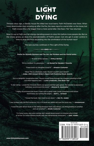 A deadly past. An unruly power. Two worlds colliding. Thirteen days ago, a deadly house fire killed two local teens. Faith McDaniels was there. When more dead bodies start showing up after the fire, the news reports a serial killer on the loose, but Faith knows this is far bigger than a mere serial killer. She fears "He" has returned. Now it is up to Faith and her energy-bending powers to stop Him before more people die. But as the chaos grows, so does the unpredictability of Faith’s power. Can she get it under control in time to stop this from escalating into the annihilation of the human race? The epic journey continues in The Light of the Dying.