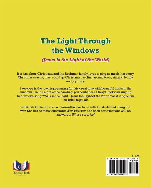 It is just about Christmas, and the Rockman family loves to sing so much that every Christmas season, they would go Christmas caroling around town, singing loudly and joyously. Everyone in the town is preparing for this great time with beautiful lights in the windows. On the night of the caroling, you could hear Cheryl Rockman singing her favorite song, "Walk in the Light...Jesus the Light of the World," as it rang out in the brisk night air. But Sarah Rockman is on a mission that has to do with the dark road along the way. She has so many questions: Why, why, why, and soon her questions will be answered. What a surprise!