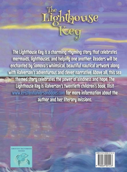 The Lighthouse Key is a charming rhyming story that celebrates mermaids, lighthouses, and helping one another. Readers will be enchanted by Somova's whimsical, beautiful nautical artwork along with Halverson's adventurous and clever narrative. Above all, this sea themed story celebrates the power of kindness and hope. The Lighthouse Key is Halverson's twentieth children's book. Visit www.kristenhalversonbooks.com for more information about the author and her literary missions.