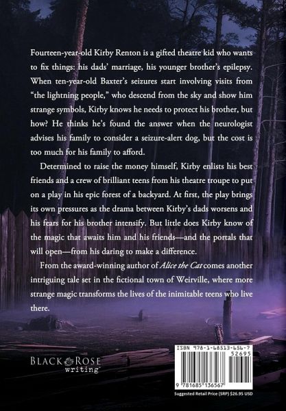 When his younger brother Baxter starts having seizures and receives visits from "the lightning people," fourteen-year-old Kirby rallies his theatre friends to raise money for a seizure-alert dog, but their production opens a magic portal.