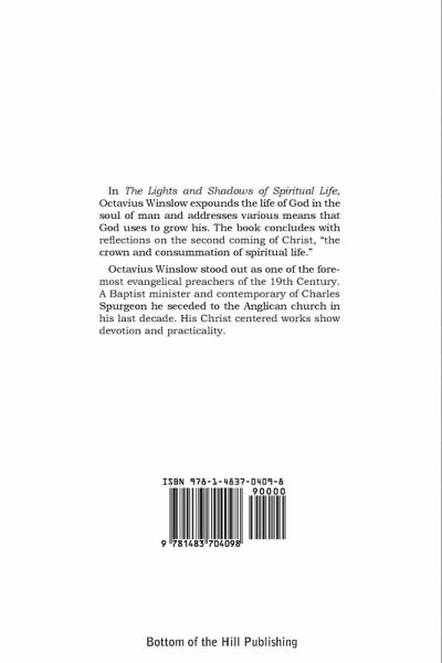In The Lights and Shadows of Spiritual Life, Octavius Winslow expounds the life of God in the soul of man and addresses various means that God uses to grow his. The book concludes with reflections on the second coming of Christ, "the crown and consummation of spiritual life." Octavius Winslow stood out as one of the foremost evangelical preachers of the 19th Century. A Baptist minister and contemporary of Charles Spurgeon he seceded to the Anglican church in his last decade. His Christ centered works show devotion and practicality.