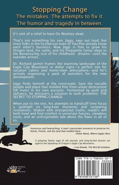 It's sort of a relief to have Ox Woolsey dead. It's not something his son, Jiggs, says out loud, but most folks in the fizzled-out town of Two Pan already know each other's business. Now Jiggs is free to grow his Oregon land, his cattle, and his frequently funny ideas to the Bonanza-big size of his childhood dreams-until the outsider arrives. Dr. Richard Jarmin frames the stunning landscape of the Eagle Cap Mountains in dollar signs-a perfect storm of vacation cabins and home-town atmosphere-and he's actively organizing the new development. Jiggs finds himself at the crossroads of saving the rascally townsfolk from urban destruction or investing in his own pursuits. Tormented by guilt and defiance, he discovers a solution to both problems: the secret to stopping change. When put to the test, his attempts to handcuff time focus a spotlight on long-kept mysteries and unsparing revelations. Shaken with unexpected truths, readers of The Lights of Two Pan will both howl and find comfort in uncertain futures, sleepless souls, and an unforgettable tale about the flaws in all of us.