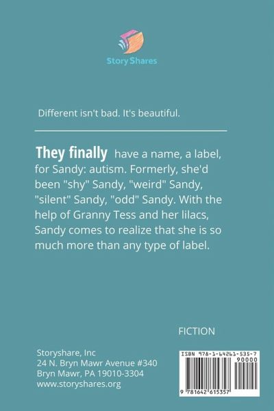 They finally have a name, a label, for Sandy: autism. Formerly, she'd been "shy" Sandy, "weird" Sandy, "silent" Sandy, "odd" Sandy. With the help of Granny Tess and her lilacs, Sandy comes to realize that she is so much more than any type of label. She realizes that she is different, and different isn't bad; it's beautiful.