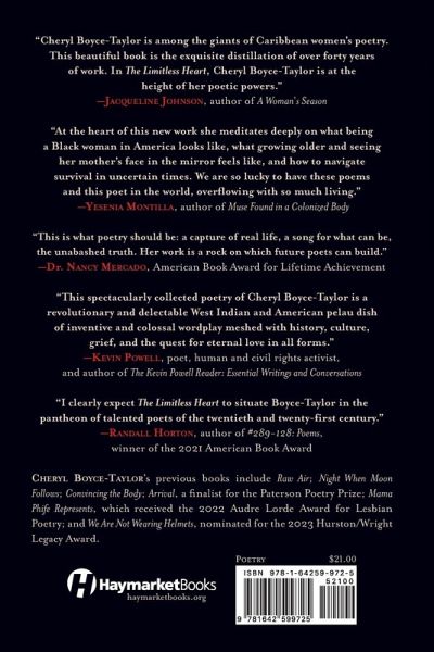 Encompassing the breadth of Cheryl Boyce-Taylor’s astounding career, The Limitless Heart is a time capsule of the boundless love, care, grief, and fortitude that make her work so stirring. With deep empathy, thoughtfulness, charisma, and lyricism, Boyce-Taylor’s work explores questions of immigration, motherhood, and queer sensuality, among other themes. Grief is both an anchor and a door throughout Boyce-Taylor’s poetry, as seen in Mama Phife Represents, a hybrid of memoir and verse on the death of her son, Malik "Phife Dawg" Taylor of A Tribe Called Quest. Questions regarding Blackness and Black womanhood in the United States are stitched throughout her books, and Boyce-Taylor leans into a more overtly defiant political register in her latest work, We Are Not Wearing Helmets, while maintaining the connective spine of the Trinidadian dialect that appears throughout all her work. Selections from these books, as well as her other poetry collections, appear in this new volume. Curated from Boyce-Taylor’s body of work, The Limitless Heart encapsulates her progression as a writer throughout the decades of her highly successful career.