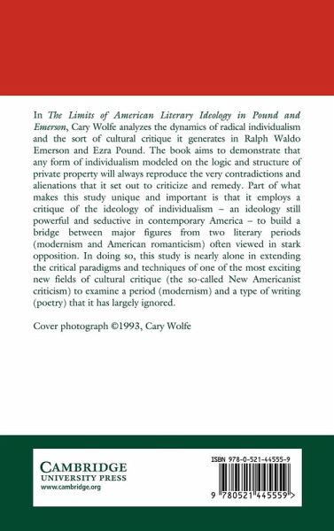 In The Limits of American Literary Ideology in Pound and Emerson, Cary Wolfe analyses the dynamics and consequences of radical individualism and the sort of cultural critique it generates in Ralph Waldo Emerson and Ezra Pound. The main purpose of the book is to demonstrate that any form of individualism that is modelled on the logic and structure of private property will always reproduce the very contradictions and alienations that it set out to criticise and to remedy. Part of what makes this study unique and important is that it uses the ideology of individualism, still so powerful and seductive in contemporary America, to build a bridge between the two major figures from literary periods - Modernism and American Romanticism - which are often seen in stark opposition. In doing so, this study extends the critical paradigms and techniques of one of the most exciting new fields of cultural criticism (the so-called 'New Americanist' criticism) to cover a period (Modernism) and a type of writing (poetry) that it has largely ignored.