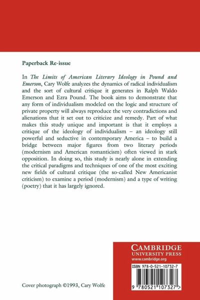 Cary Wolfe analyses the dynamics and consequences of radical individualism and the sort of cultural critique it generates in Ralph Waldo Emerson and Ezra Pound.