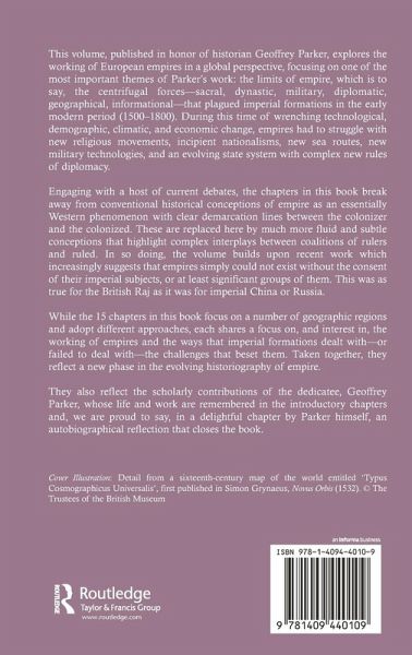 This volume, published in honor of historian Geoffrey Parker, explores the working of European empires in a global perspective, focusing on one of the most important themes of Parker's work: the limits of empire, which is to say, the centrifugal forces - sacral, dynastic, military, diplomatic, geographical, informational - that plagued imperial formations in the early modern period (1500-1800). During this time of wrenching technological, demographic, climatic, and economic change, empires had to struggle with new religious movements, incipient nationalisms, new sea routes, new military technologies, and an evolving state system with complex new rules of diplomacy. Engaging with a host of current debates, the chapters in this book break away from conventional historical conceptions of empire as an essentially western phenomenon with clear demarcation lines between the colonizer and the colonized. These are replaced here by much more fluid and subtle conceptions that highlight complex interplays between coalitions of rulers and ruled. In so doing, the volume builds upon recent work that increasingly suggests that empires simply could not exist without the consent of their imperial subjects, or at least significant groups of them. This was as true for the British Raj as it was for imperial China or Russia. Whilst the thirteen chapters in this book focus on a number of geographic regions and adopt different approaches, each shares a focus on, and interest in, the working of empires and the ways that imperial formations dealt with - or failed to deal with - the challenges that beset them. Taken together, they reflect a new phase in the evolving historiography of empire. They also reflect the scholarly contributions of the dedicatee, Geoffrey Parker, whose life and work are discussed in the introductory chapters and, we're proud to say, in a delightful chapter by Parker himself, an autobiographical reflection that closes the book.