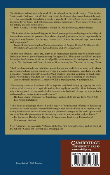 Developing countries commonly adopt reforms to improve their governments yet they usually fail to produce more functional and effective governments. Andrews argues that reforms often fail to make governments better because they are introduced as signals to gain short-term support. These signals introduce unrealistic best practices that do not fit developing country contexts and are not considered relevant by implementing agents. The result is a set of new forms that do not function. However, there are realistic solutions emerging from institutional reforms in some developing countries. Lessons from these experiences suggest that reform limits, although challenging to adopt, can be overcome by focusing change on problem solving through an incremental process that involves multiple agents.