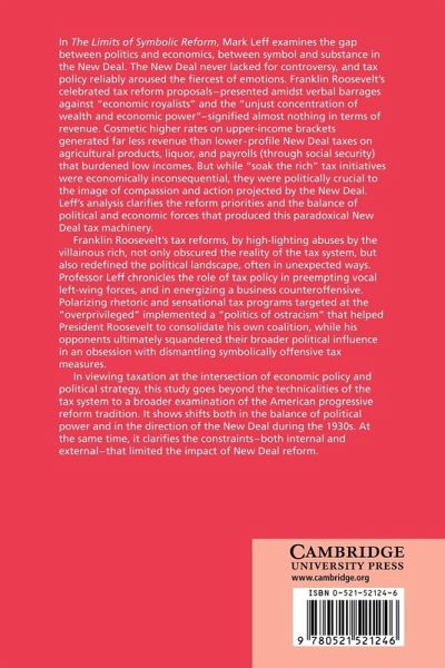 In The Limits of Symbolic Reform, Mark Leff examines the gap between politics and economics, between symbol and substance in the New Deal. The New Deal never lacked for controversy, and tax policy reliably aroused the fiercest of emotions. Franklin Roosevelt's celebrated tax reform proposals - presented amidst verbal barrages against 'economic royalists' and the 'unjust concentration of wealth and economic power' - signified almost nothing in terms of revenue. Cosmetic higher rates on upper-income brackets generated far less revenue than lower-profile New Deal taxes on agricultural products, liquor, and payrolls (through social security) that burdened low incomes. But while 'soak the rich' tax initiatives were economically inconsequential, they were politically crucial to the image of compassion and action projected by the New Deal. Leff's analysis clarifies the reform priorities and the balance of political and economic that produced this paradoxical New Deal tax machinery.