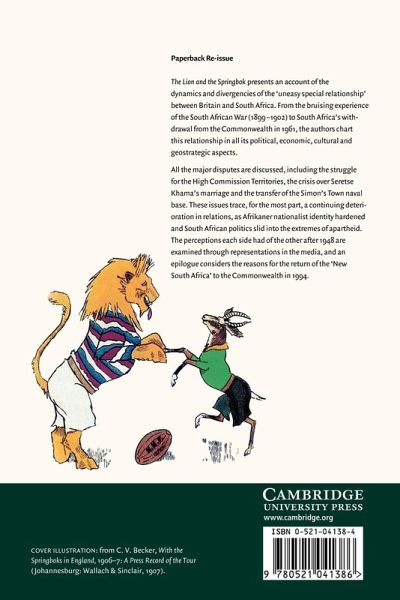 The Lion and the Springbok presents an account of the dynamics and divergences of the 'uneasy special relationship' of Britain and South Africa. From the bruising experience of the South African War (1899-1902) to South Africa's withdrawal from the Commonwealth in 1961, the authors chart this relationship in all its political, economic, cultural and geostrategic aspects. All the major disputes are discussed including the struggle for the High Commission Territories, the crisis over Seretse Khama's marriage and the transfer of the Simon's Town naval base. These issues trace, for the most part, a continuing deterioration in relations, as Afrikaner nationalist identity hardened and South African politics slid into the extremes of apartheid. The perceptions each side had of the other after 1948 are examined through representations in the media, and an epilogue considers the reasons for the return of the 'New South Africa' to the Commonwealth in 1994.