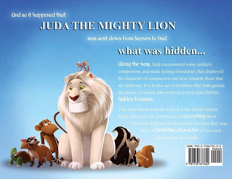 And so it happened that Juda the mightly lion was sent down from heaven to find what was hidden... Along the way, Juda encountered some unlikely companions and made lasting friendships that displayed his character of compassion and love towards those that are different. It is in this act of kindness that Juda gained the hearts of friends who went on to help him find his hidden treasure. This story about Juda the Lion is a fun family read to teach little ones the importance of accepting those who look different on the outside because they may have a Christlike character of love and devotion on the inside.
