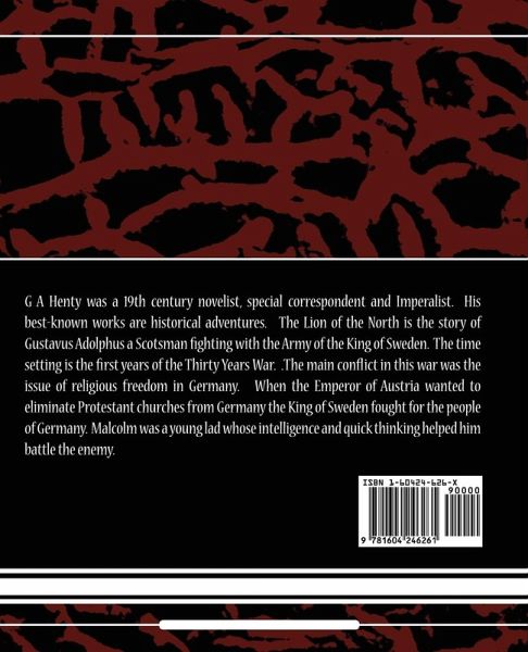 G A Henty was a 19th century novelist, special correspondent and Imperalist. His best-known works are historical adventures. The Lion of the North is the story of Gustavus Adolphus a Scotsman fighting with the Army of the King of Sweden. The time setting is the first years of the Thirty Years War. .The main conflict in this war was the issue of religious freedom in Germany. When the Emperor of Austria wanted to eliminate Protestant churches from Germany the King of Sweden fought for the people of Germany. Malcolm was a young lad whose intelligence and quick thinking helped him battle the enemy.