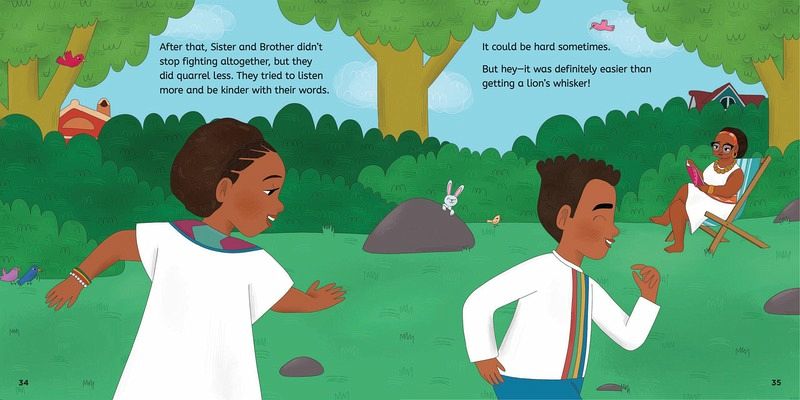 In this version of the Ethiopian folktale, a Grandmother sends her bickering grandchildren on a dangerous mission to pluck a lion's whisker for her magical potion, where they learn valuable lessons about working together, being brave, and showing patience and understanding for others.