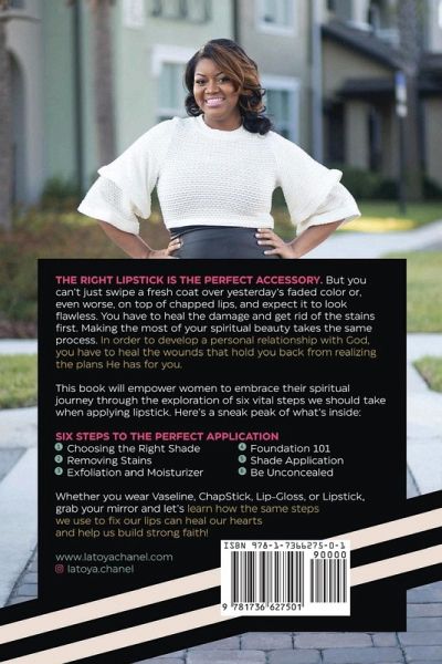 The right lipstick is the perfect accessory. But you can't just swipe a fresh coat over yesterday's faded color, or, even worse, on top of chapped lips, and expect it to look flawless. You have to heal the damage and get rid of the stains first. Making the most of your spiritual beauty takes the same process. In order to develop a personal relationship with God, you have to heal the wounds that hold you back from realizing the plans He has for you. This book will empower women to embrace their spiritual journey through the exploration of six vital steps we should take when applying lipstick. Here's a sneak peak of what's inside: Six Steps to the perfect application: 1. Choosing the Right Shade 2. Removing Stains 3. Exfoliation and Moisturizer 4. Foundation 101 5. Shade Application 6. Be Unconcealed Whether you wear Vaseline, ChapStick, Lip-Gloss, or Lipstick, grab your mirror and let's learn how the same steps we use to fix our lips can heal our hearts and help us build strong faith!