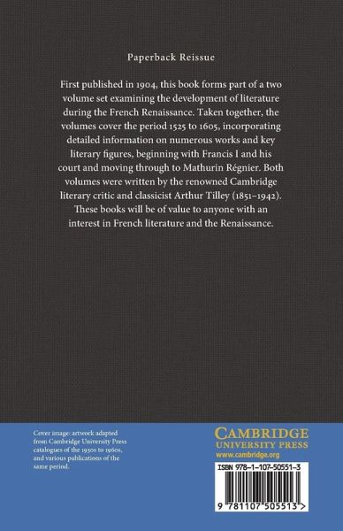 First published in 1904, this book forms part of a two-volume set examining the development of literature during the French Renaissance. Taken together, the volumes cover the period 1525 to 1605, incorporating detailed information on numerous works and key literary figures, beginning with Francis I and his court and moving through to Mathurin Régnier. Both volumes were written by the renowned Cambridge literary critic and classicist Arthur Tilley (1851-1942). These books will be of value to anyone with an interest in French literature and the Renaissance.
