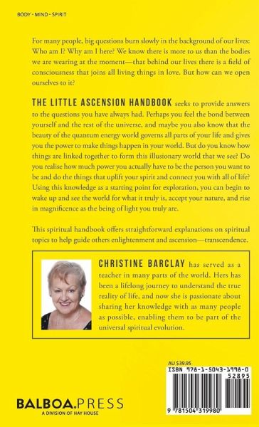 For many people, big questions burn slowly in the background of our lives: Who am I? Why am I here? We know there is more to us than the bodies we are wearing at the moment-that behind our lives there is a field of consciousness that joins all living things in love. But how can we open ourselves to it? The Little Ascension Handbook seeks to provide answers to the questions you have always had. Perhaps you feel the bond between yourself and the rest of the universe, and maybe you also know that the beauty of the quantum energy world governs all parts of your life and gives you the power to make things happen in your world. But do you know how things are linked together to form this illusionary world that we see? Do you realise how much power you actually have to be the person you want to be and do the things that uplift your spirit and connect you with all of life? Using this knowledge as a starting point for exploration, you can begin to wake up and see the world for what it truly is, accept your nature, and rise in magnificence as the being of light you truly are. This spiritual handbook offers straightforward explanations on spiritual topics to help guide others enlightenment and ascension-transcendence.