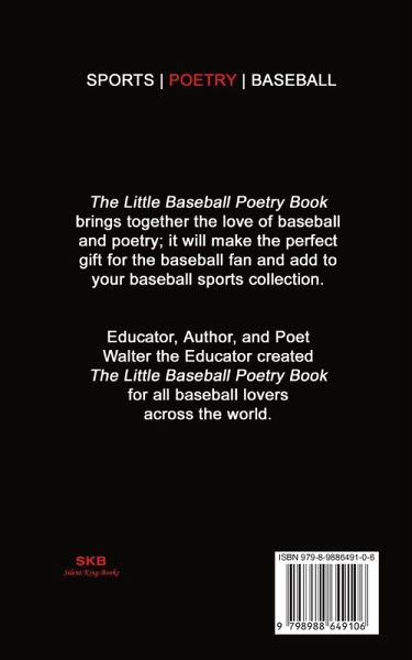 The Little Baseball Poetry Book brings together the love of baseball and poetry; it will make the perfect gift for the baseball fan and add to your baseball sports collection. Educator, Author, and Poet Walter the Educator created The Little Baseball Poetry Book for all baseball lovers across the world. The Little Baseball Poetry Book includes unique poems representing baseball topics associated with the lovable game, making it the perfect gift for the baseball lover. Creating a poetry book about baseball can be a unique way of exploring the game. Poetry can give a fresh perspective and bring an imaginative approach to understanding and appreciating the game of baseball. Moreover, it can bridge the gap between sports and art and appeal to a larger audience. Overall, a poetry book about baseball can be an appealing and creative way to engage with the game that so many people love.