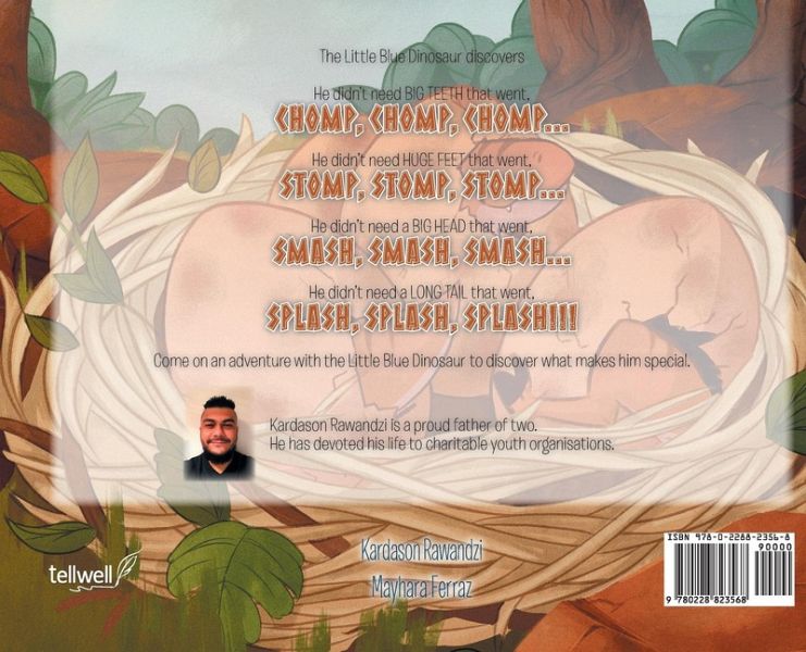 The Little Blue Dinosaur discovers He didn't need BIG TEETH that went, CHOMP, CHOMP, CHOMP... He didn't need HUGE FEET that went, STOMP, STOMP, STOMP... He didn't need a BIG HEAD that went, SMASH, SMASH, SMASH... He didn't need a LONG TAIL that went, SPLASH, SPLASH, SPLASH!!! Come on an adventure with the Little Blue Dinosaur to discover what makes him special.