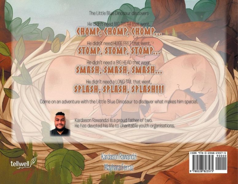 The Little Blue Dinosaur discovers He didn't need BIG TEETH that went, CHOMP, CHOMP, CHOMP... He didn't need HUGE FEET that went, STOMP, STOMP, STOMP... He didn't need a BIG HEAD that went, SMASH, SMASH, SMASH... He didn't need a LONG TAIL that went, SPLASH, SPLASH, SPLASH!!! Come on an adventure with the Little Blue Dinosaur to discover what makes him special.