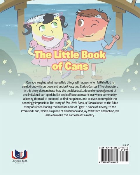 Can you imagine what incredible things will happen when faith in God is carried out with purpose and action? Katy and Carlos Can can! The characters in this story demonstrate how the positive attitude and encouragement of one individual can spark belief and selfless teamwork in a whole community, allowing them all to succeed, to find happiness, and to even accomplish the seemingly impossible. The story of The Little Book of Cans alludes to the Bible story of Moses leading the Israelites out of Egypt, a place of slavery, to the Promised Land, which is a place of abundance and joy. With faith and action, we also can make this same belief a reality.