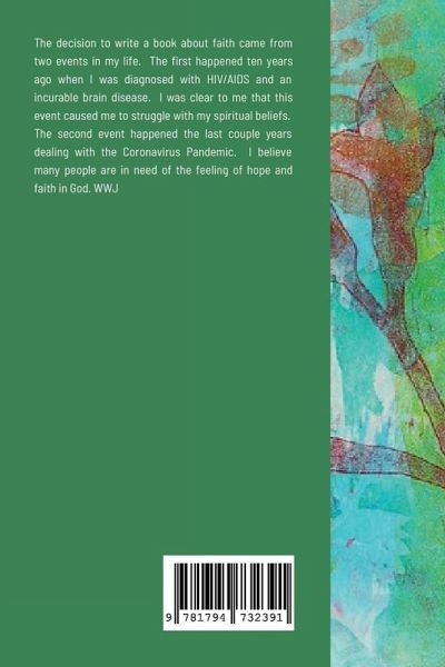 The decision to write a book about faith came to me from two events in my life. The first happened ten years ago when I was diagnosed with HIV/AIDS and an incurable brain disease. It was clear to me that this event caused me to struggle with my spiritual beliefs. The second event happened the last couple years ago dealing with the Coronavirus Pandemic. I believe many people were in need of the feeling of hope and faith in God.