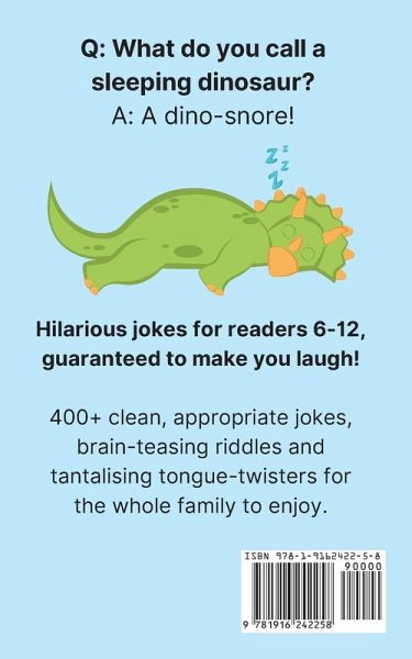 The ultimate little joke book for kids 6-12 with 400+ jokes. Keep them reading and laughing for hours. "Q: How does a scientist freshen their breath? A: With experi-mints!" This great little book is a collection of 400+ silly kids jokes, knock knock jokes, brain-teasing riddles and tantalizing tongue twisters. All content is clean, 100% child-friendly and most importantly - ACTUALLY funny! There are a few simple black and white illustrations to keep wandering minds interested, while still feeling "grown up". This book is great for both boys and girls of 6-12. Short, simple and hilarious Ideal as a birthday gift Christmas and stocking stuffer Rain day and car journey entertainment Great for early readers or reluctant readers Children can sharpen their wit and also strengthen their reading skills, without even realizing it. This simple-to-read book will provide hours of fun and entertainment with friends at school, or at home with the family. They will become joke masters in no time - no more listening to dull or nonsensical jokes! The jokes in this book are short and concise, so they can be memorized quickly and easily. Jokes cover everyday topics such as school, friends, family, animals etc. Page Up and Order Now