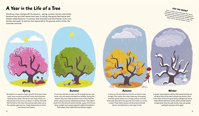 Was ist ein Baum und wie wächst er eigentlich? Wie verändert sich ein Baum im Laufe der Jahreszeiten und welche Stadien durchläuft er während seines ganzen Lebens? Was geschieht in seiner Krone, in seinem Stamm oder an seinen Wurzeln, wenn wir ganz genau hinsehen? Welche Tiere leben dort und welche Wälder haben sich in verschiedenen Klimazonen weltweit entwickelt, wo viele Bäume dicht beieinander stehen? Das kleine Buch der Bäume nimmt Kinder mit in die Welt dieser faszinierenden Gewächse. Eine kleine Baumkunde stellt verschiedene Baumsorten vor und nicht zuletzt kann man auf Bäumen wunderbar klettern, in ihrer Krone ein Baumhaus bauen oder in ihrem Schatten liegen und die Seele baumeln lassen ... Im Baumquiz auf der letzten Doppelseite können Kinder ihr neu erworbenes Wissen gleich einbringen und Fragen beantworten, deren Antworten sie vielleicht zuvor noch nicht gewusst hätten.
