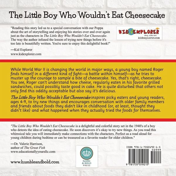 While World War II is changing the world in major ways, a young boy named Roger finds himself in a different kind of fight-a battle within himself-as he tries to muster up the courage to sample a bite of cheesecake. Yes, that's right, cheesecake. You see, Roger can't understand how cheese, regularly eaten in his favorite grilled sandwiches, could possibly taste good in cake. He is quite disturbed that others not only find this oddity acceptable but also say it's delicious. ¿¿The Little Boy Who Wouldn't Eat Cheesecake inspires picky eaters and young readers, ages 4-9, to try new things and encourages conversation with older family members and friends about foods they didn't like in childhood (or, at least, thought they didn't like) and what happened when they actually tried the foods for themselves. A timely book about a preconceived notion being challenged and overcome before it's too late.
