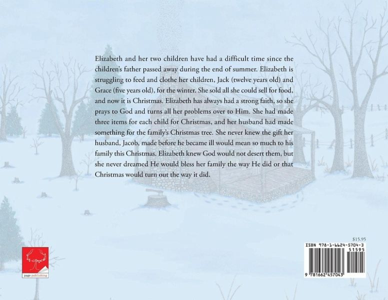 Elizabeth and her two children have had a difficult time since the children's father passed away during the end of summer. Elizabeth is struggling to feed and clothe her children, Jack (twelve years old) and Grace (five years old), for the winter. She sold all she could sell for food, and now it is Christmas. Elizabeth has always had a strong faith, so she prays to God and turns all her problems over to Him. She had made three items for each child for Christmas, and her husband had made something for the family's Christmas tree. She never knew the gift her husband, Jacob, made before he became ill would mean so much to his family this Christmas. Elizabeth knew God would not desert them, but she never dreamed He would bless her family the way He did or that Christmas would turn out the way it did.