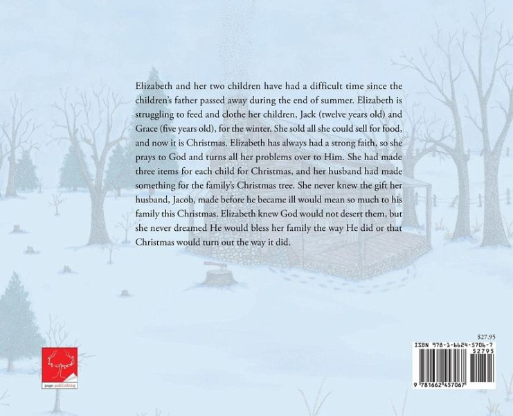 Elizabeth and her two children have had a difficult time since the children's father passed away during the end of summer. Elizabeth is struggling to feed and clothe her children, Jack (twelve years old) and Grace (five years old), for the winter. She sold all she could sell for food, and now it is Christmas. Elizabeth has always had a strong faith, so she prays to God and turns all her problems over to Him. She had made three items for each child for Christmas, and her husband had made something for the family's Christmas tree. She never knew the gift her husband, Jacob, made before he became ill would mean so much to his family this Christmas. Elizabeth knew God would not desert them, but she never dreamed He would bless her family the way He did or that Christmas would turn out the way it did.