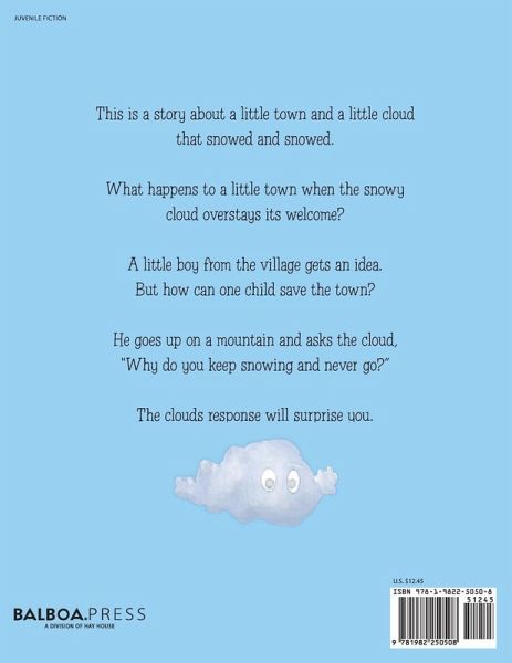 This is a story about a little town and a little cloud that snowed and snowed. What happens to a little town when the snowy cloud overstays its welcome? A little boy from the village gets an idea. But how can one child save the town? He goes up on a mountain and asks the cloud, "Why do you keep snowing and never go?" The clouds response will surprise you.