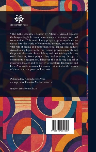 "The Little Country Theater" by Alfred G. Arvold explores the burgeoning little theater movement and its impact on rural communities. This meticulously prepared print republication delves into the world of community theater, examining the vital role of drama and performance in shaping local culture. Arvold, a key figure in the movement, provides insights into the practical aspects of establishing and maintaining a thriving rural theater, from playwriting and scenery design to community engagement. Discover the enduring appeal of grassroots theater and its power to transform landscapes and lives. A valuable resource for anyone interested in the history of theater and the power of local arts. This work has been selected by scholars as being culturally important, and is part of the knowledge base of civilization as we know it. This work is in the public domain in the United States of America, and possibly other nations. Within the United States, you may freely copy and distribute this work, as no entity (individual or corporate) has a copyright on the body of the work. Scholars believe, and we concur, that this work is important enough to be preserved, reproduced, and made generally available to the public. We appreciate your support of the preservation process, and thank you for being an important part of keeping this knowledge alive and relevant.