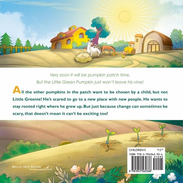 Very soon it will be pumpkin patch time, But the Little Green Pumpkin just won't leave his vine! All the other pumpkins in the patch want to be chosen by a child, but not Little Greenie! He's scared to go to a new place with new people. He wants to stay rooted right where he grew up. But just because change can sometimes be scary, that doesn't mean it can't be exciting too!
